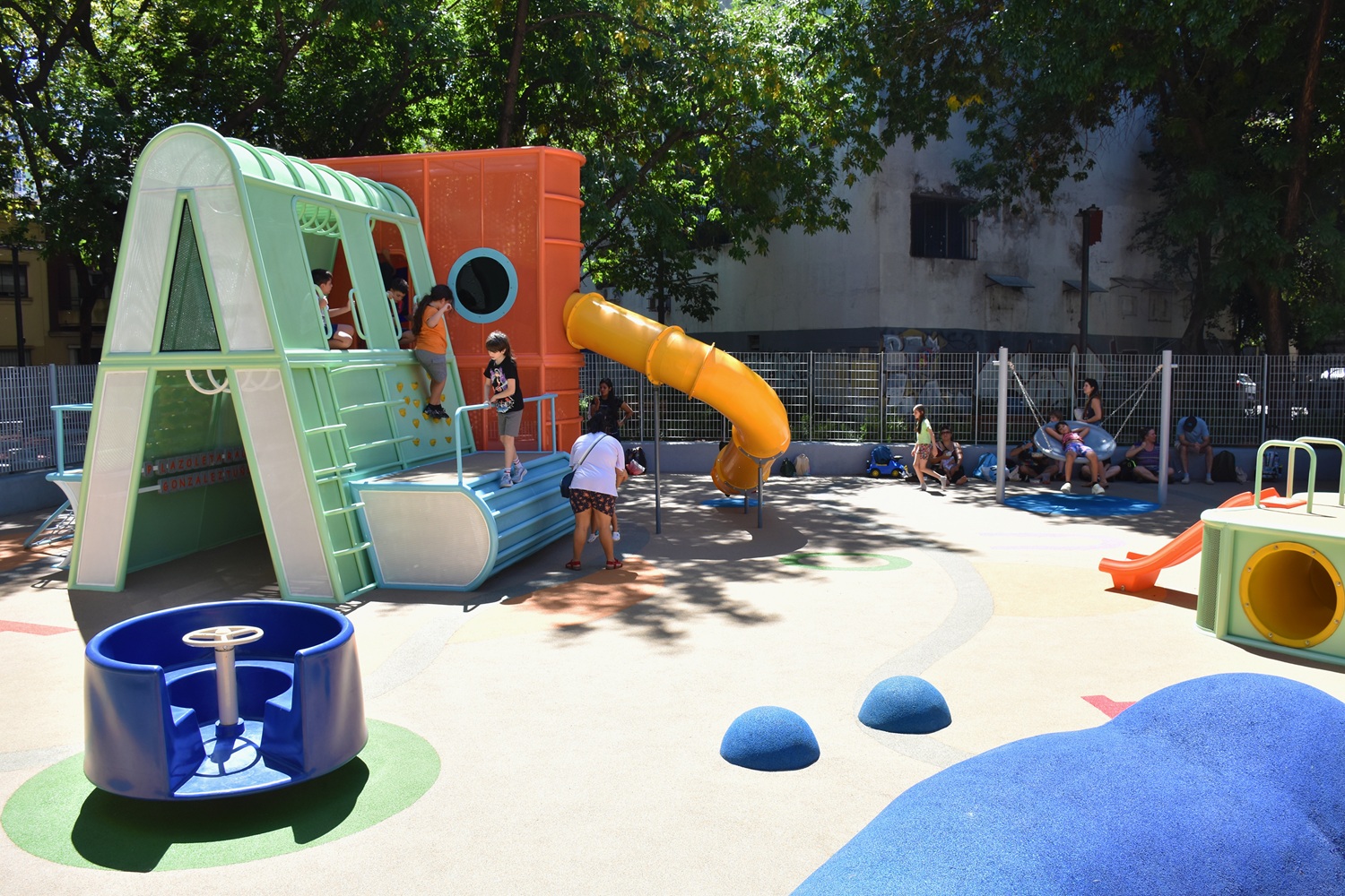 Entre los nuevos juegos se destacan un mangrullo accesible con forma de libros, un sacapuntas con tobogán y túnel de gateo y un bosque de lápices. También se sumaron juegos pensados para distintas edades, como hamaca nido, calesita, lomadas y paneles didácticos.